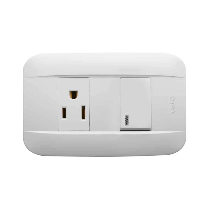 Interruptor con luz piloto y tomacorriente en un solo módulo