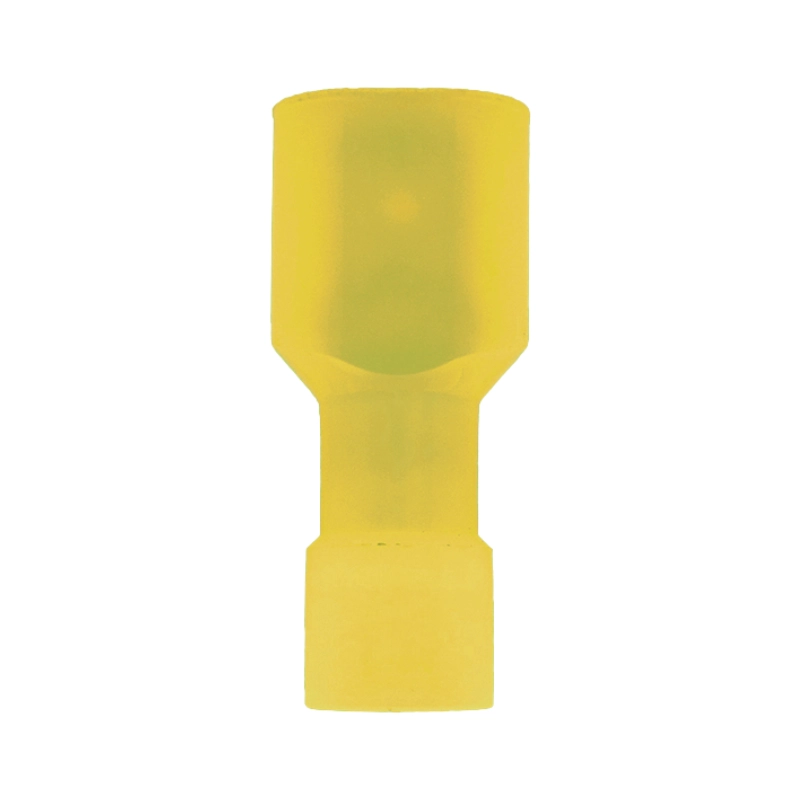 El diseño tipo macho permite la inserción en conectores hembra tipo fast-on, lo que facilita las maniobras de mantenimiento o reemplazo sin soldadura. Además, los colores rojo, azul y amarillo permiten identificar visualmente el calibre o tipo de cableado, mejorando la trazabilidad en paneles eléctricos.